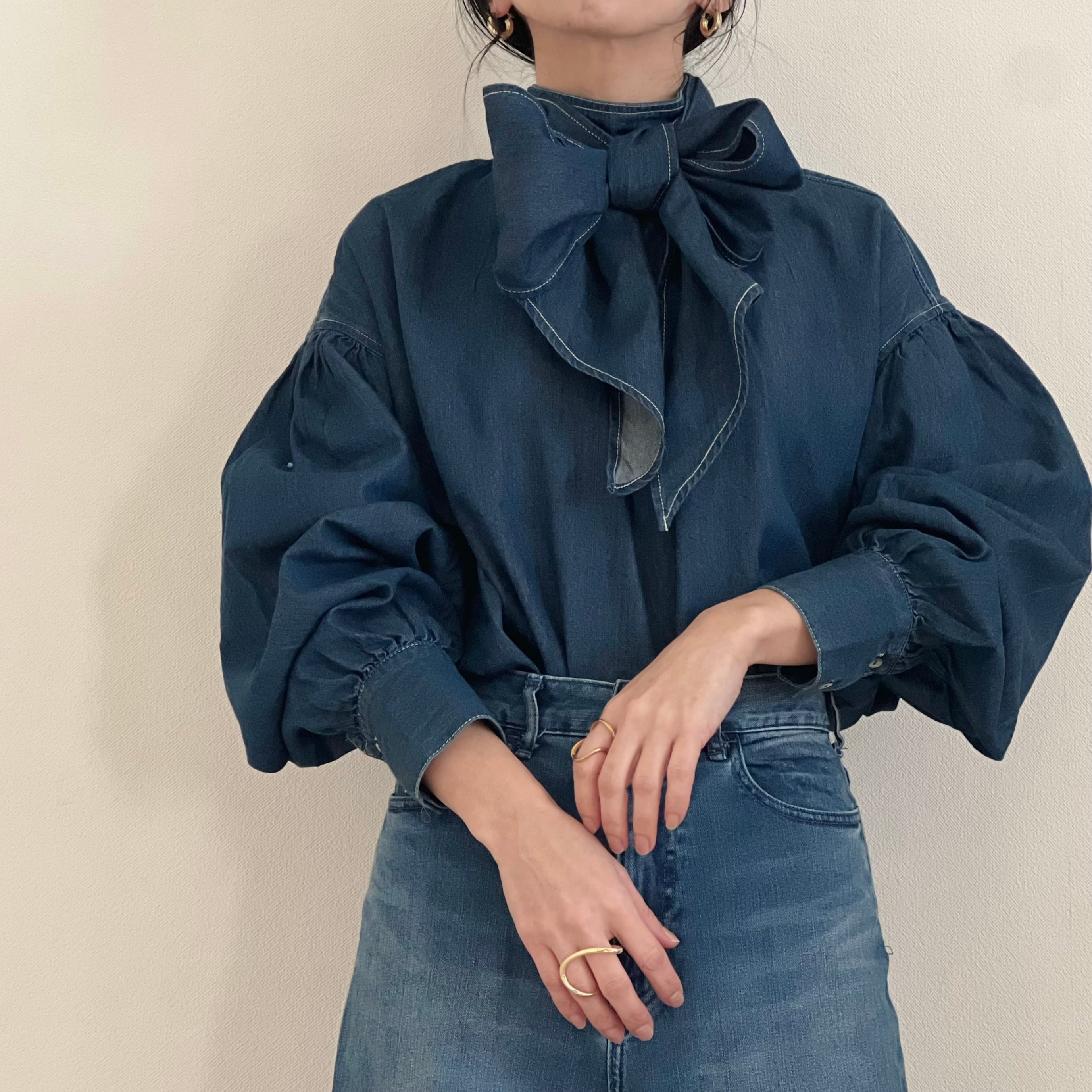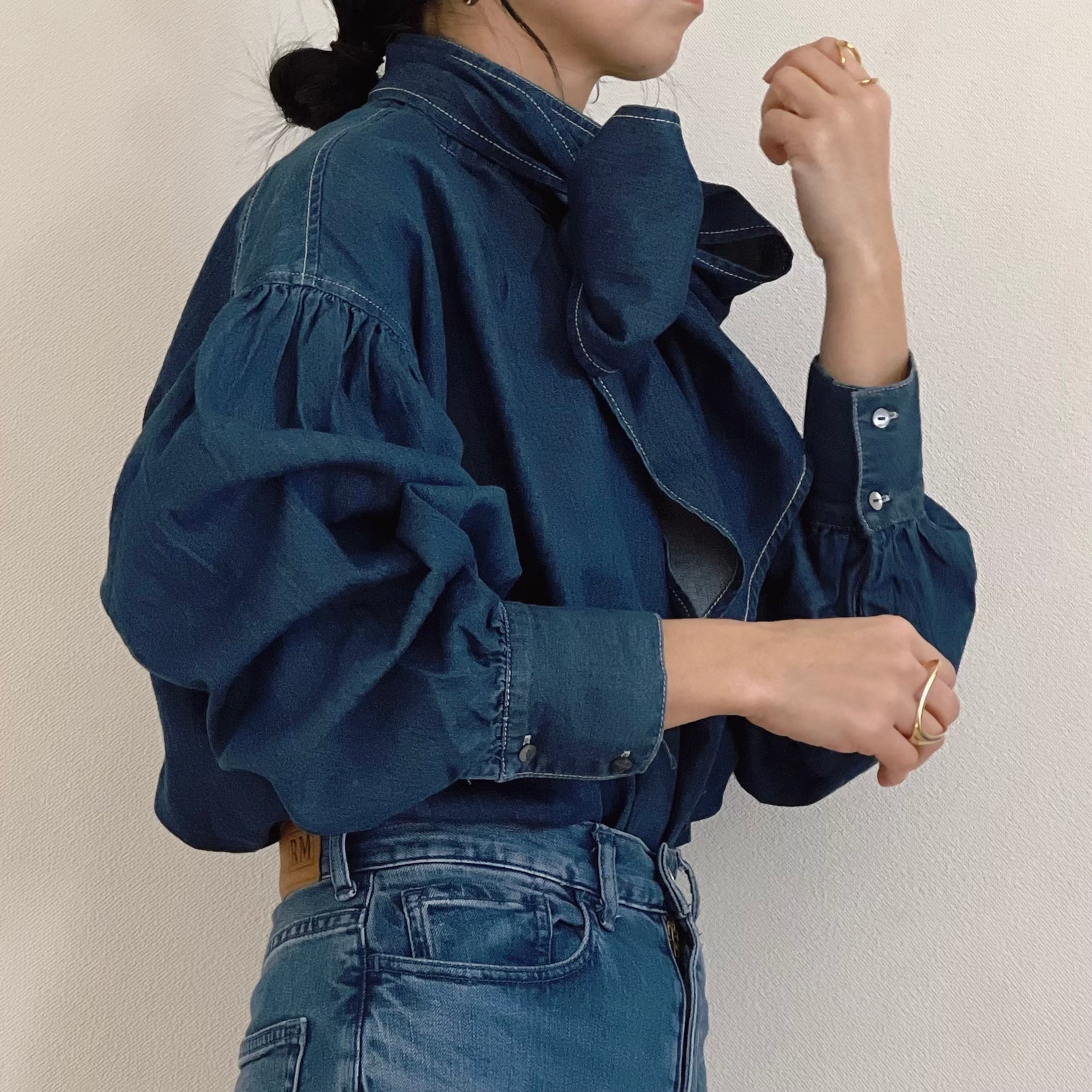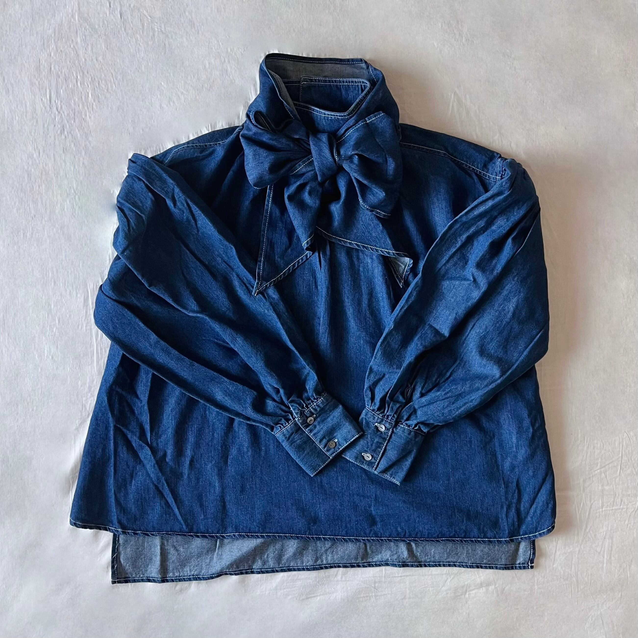 デニムリボンボウタイブラウス