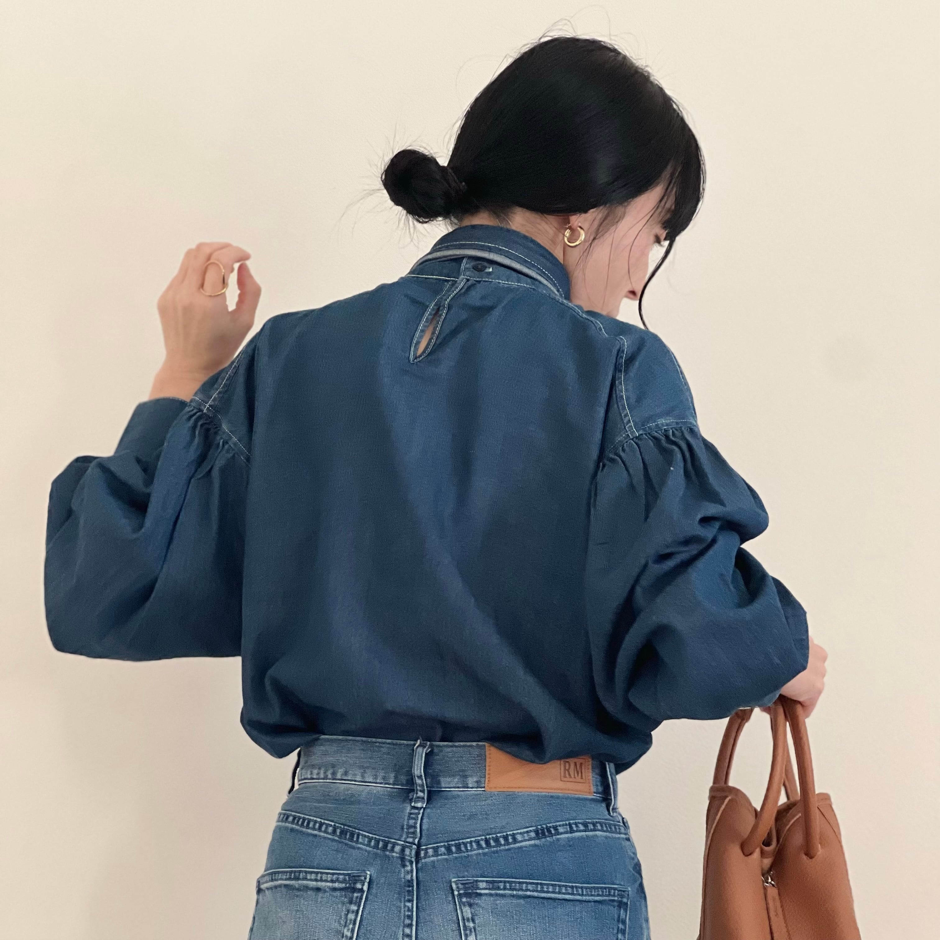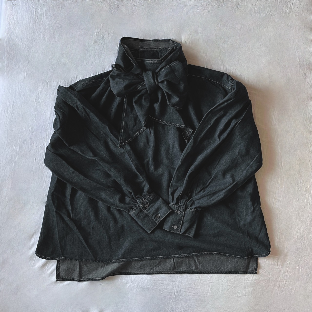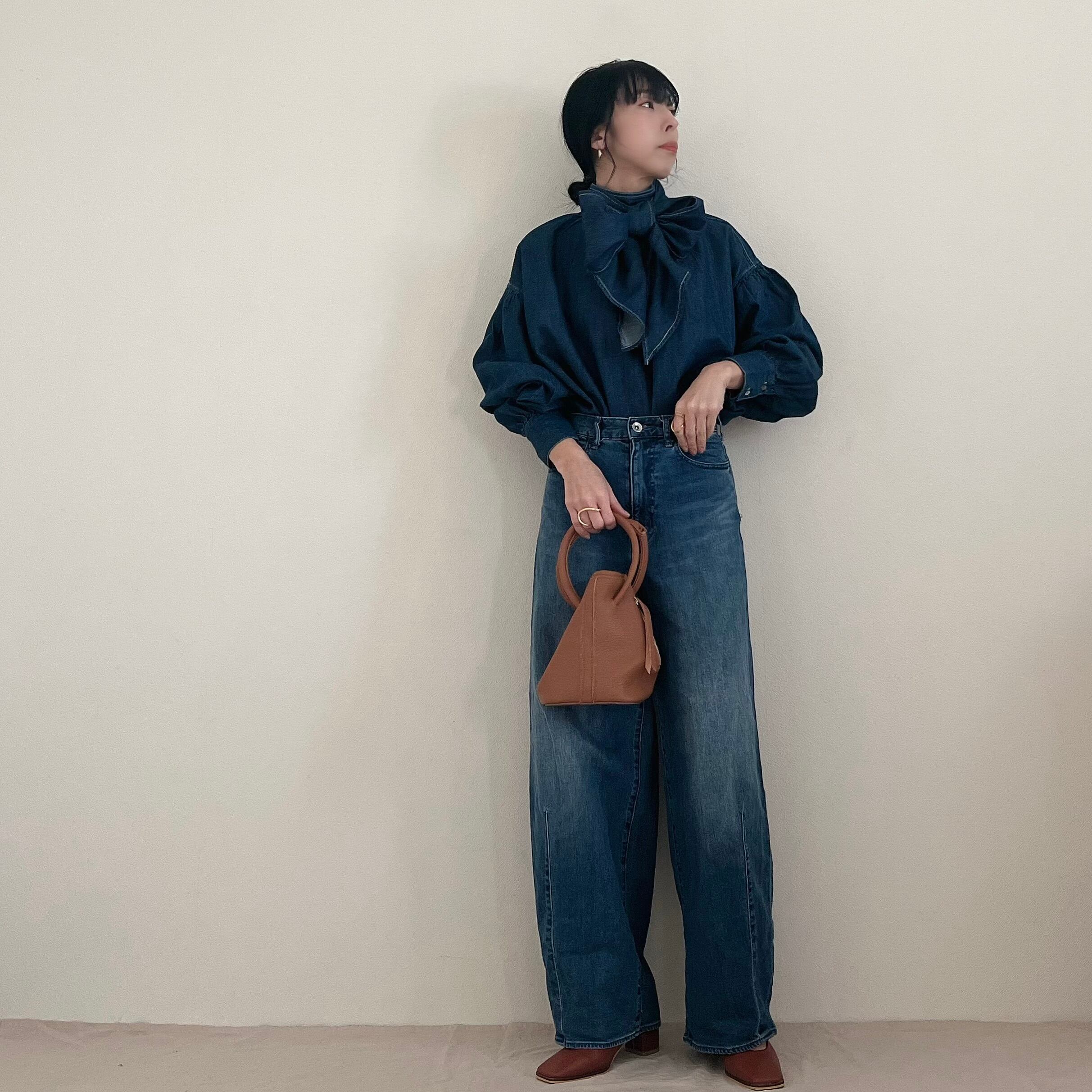 デニムリボンボウタイブラウス