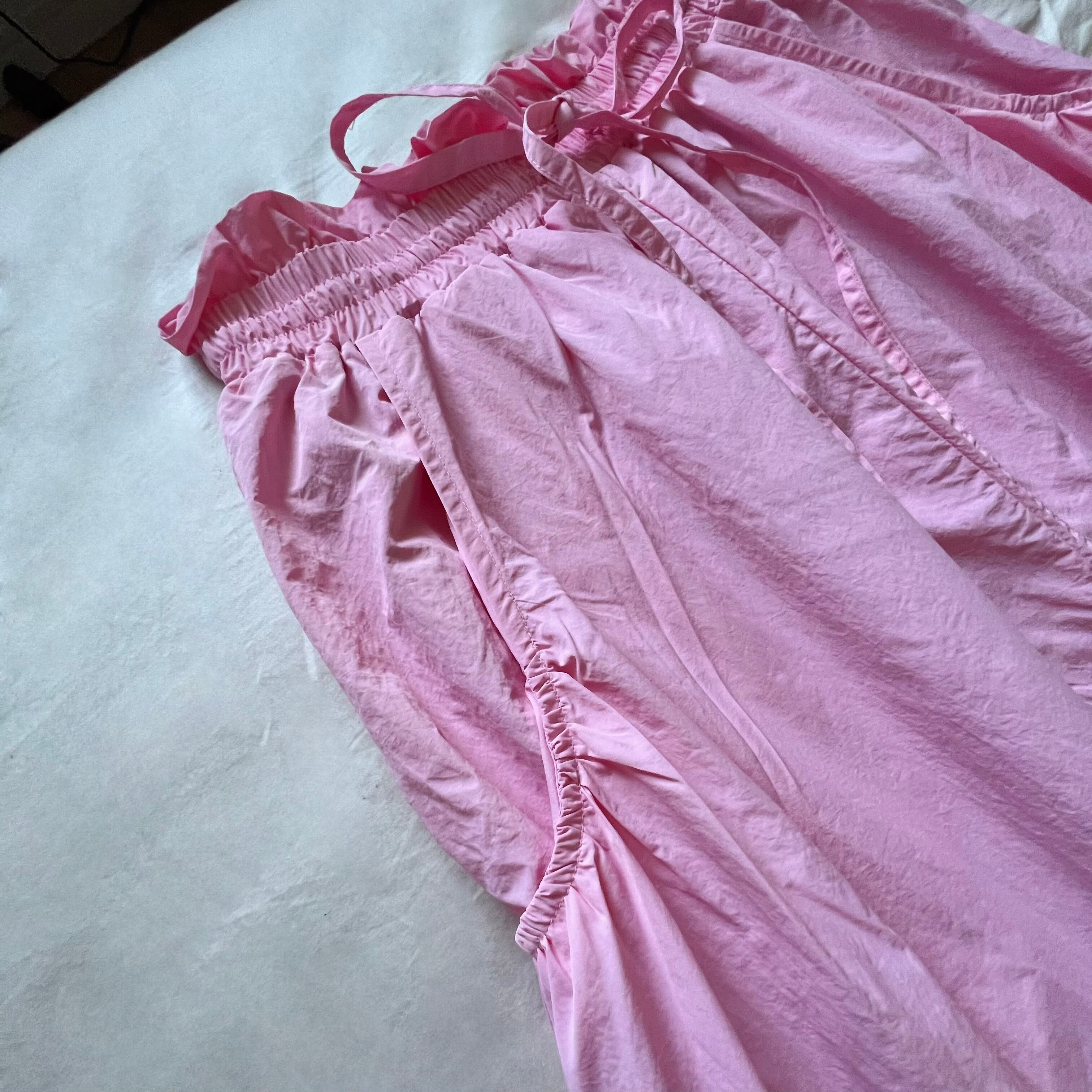 ボトム丈:98cm、ウエスト:68cm(ゴム:108cm)、裾周り:250cm