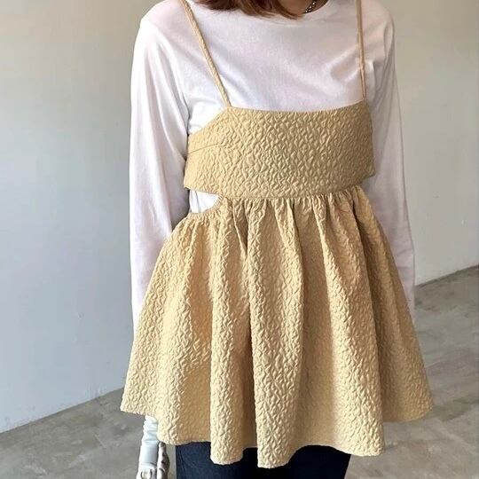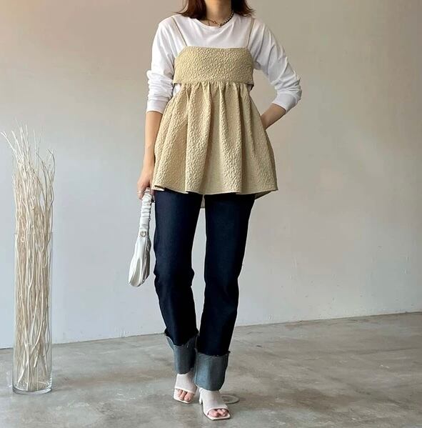 ふくれジャガード素材のキャミソールが新登場!サイドスリットがアクセントを効かせる、可愛らしい1枚です。